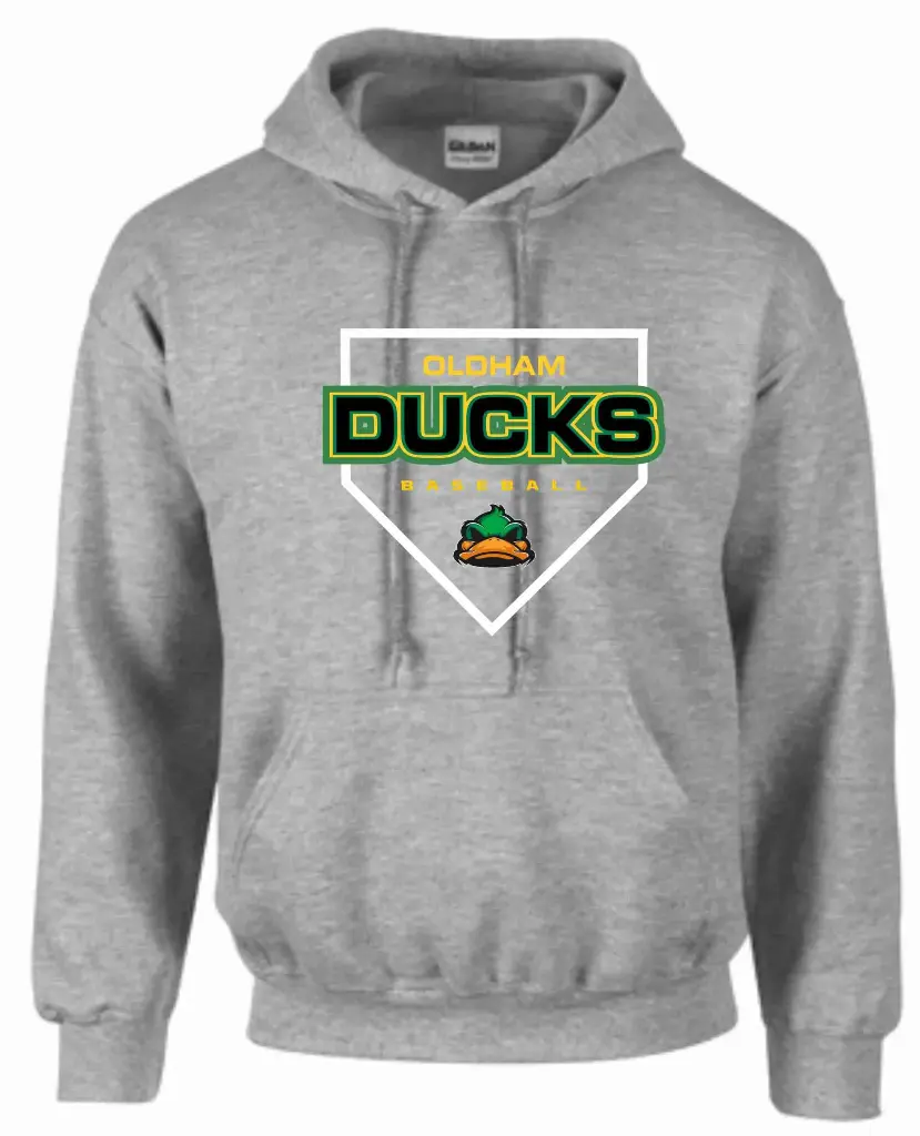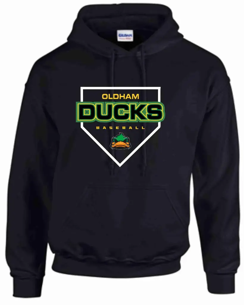 50-50 blend poly/cotton hooded sweatshirt